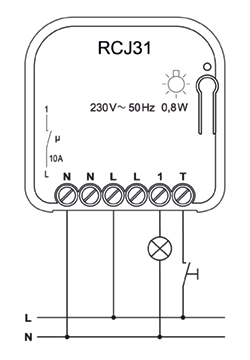Der bidirektionale Unterputz-Empfänger RCJ31 wird zum potenzialbehafteten Schalten von Netzspannungsverbrauchern eingesetzt.